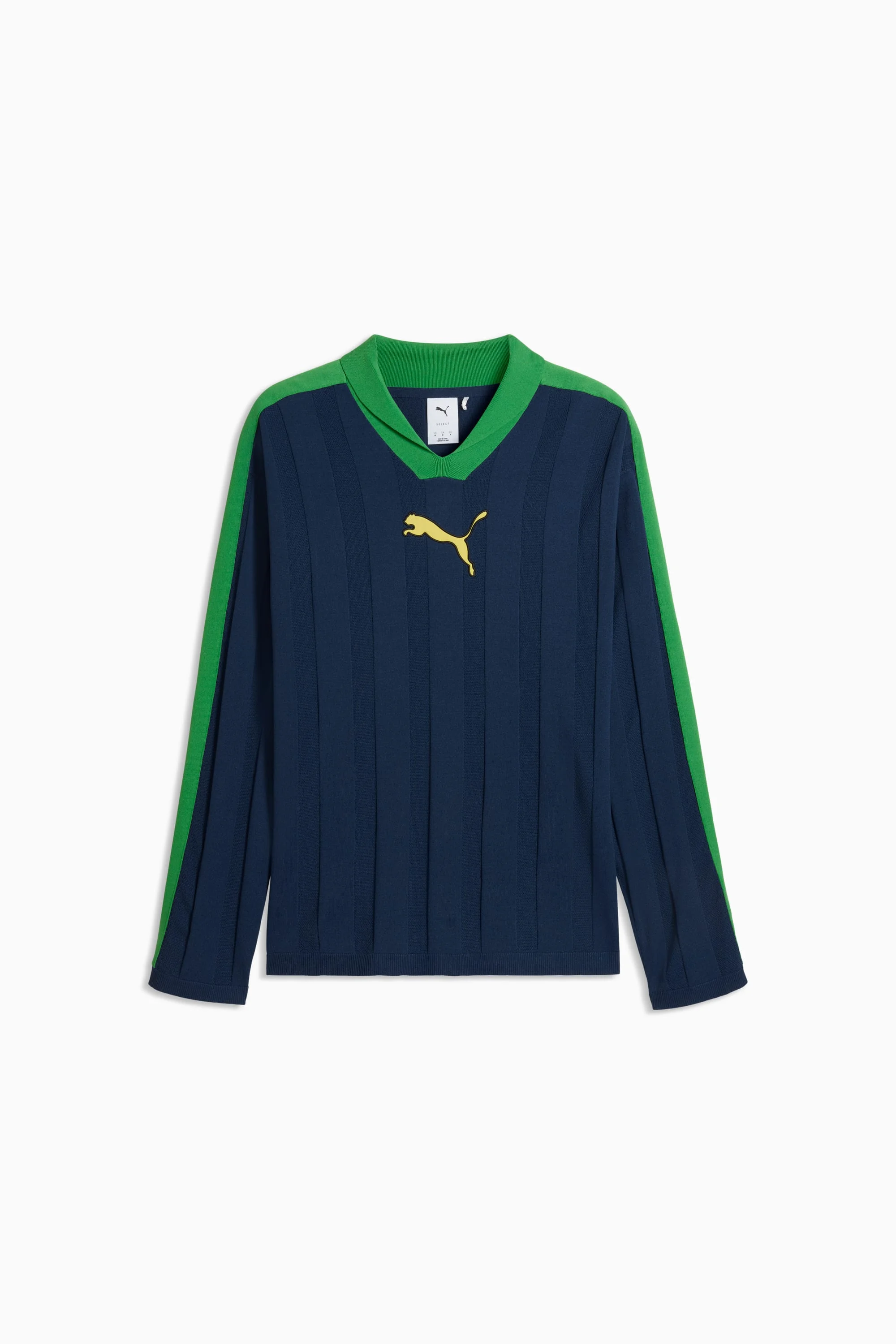 PRODUCT STORY The T7 tracksuit made its debut in 1968 and has been changing the game ever since. With its signature side panels, clean cutlines, and unmistakable PUMA DNA, the T7 has achieved icon status. This season we've amplified the classic with a bold colour palette, a range of relaxed and cropped fits, and an oversized PUMA Cat Logo for extra attitude. This polo shows off classic T7 details. FEATURES & BENEFITS - Made with at least 20% recycled materials. DETAILS - Style: 635504_49 - Color: Blue Jewel - Fit: Relaxed - Main material type: Sweater - Neck: Collar - Long sleeves - Length: Regular MATERIAL INFORMATION - Shell: 52% viscose, 46% nylon, 2% elastane - Rib: 52% viscose, 46% nylon, 2% elastane