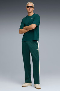 PRODUCT STORY Step up your game with PUMA's relaxed track pants. Featuring iconic T7 stripes, zip pockets, and pintuck stitching, these pants offer a sleek, straight fit. The elasticated waistband with drawcord ensures a perfect fit for every adventure. FEATURES & BENEFITS - Made with at least 50% recycled materials DETAILS - Style: 629589_75 - Color: Green Terrain-Alpine Snow - Relaxed fit - Spacer fabric - Regular length - Medium rise - Side Pocket - PUMA branding details MATERIAL INFORMATION - Upper Pocket Bag: 100% cotton - Shell: 67% polyester, 33% cotton - Lower Pocket Bag: 67% polyester, 33% cotton