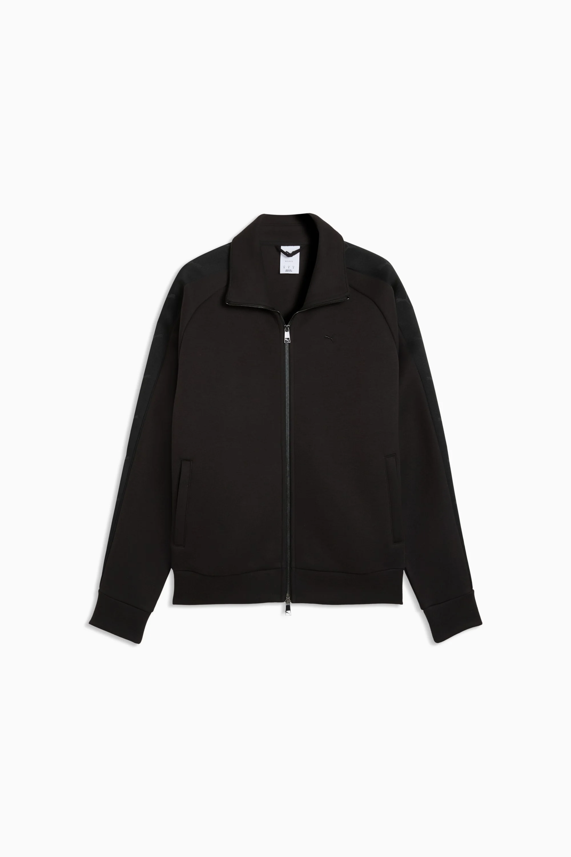 PRODUCT STORY The T7 tracksuit made its debut in 1968 and has been changing the game ever since. With its signature side panels, clean cutlines, and unmistakable PUMA DNA, the T7 has achieved icon status. This season we've amplified the classic with a bold colour palette, a range of relaxed and cropped fits, and an oversized PUMA Cat Logo for extra attitude. This track jacket shows off classic T7 details. FEATURES & BENEFITS - Made with at least 50% recycled materials. DETAILS - Style: 634718_01 - Color: PUMA Black - Fit: Regular - Main material type: Spacer - Neck: Stand up collar - Long sleeves - Closure: Full zip with two-way zip pull - Length: Standard jacket MATERIAL INFORMATION - Insert Outer Surface: 100% polyester - Upper Pocket Bag: 100% cotton - Shell: 62% polyester, 38% cotton - Insert Inner Surface: 100% cotton