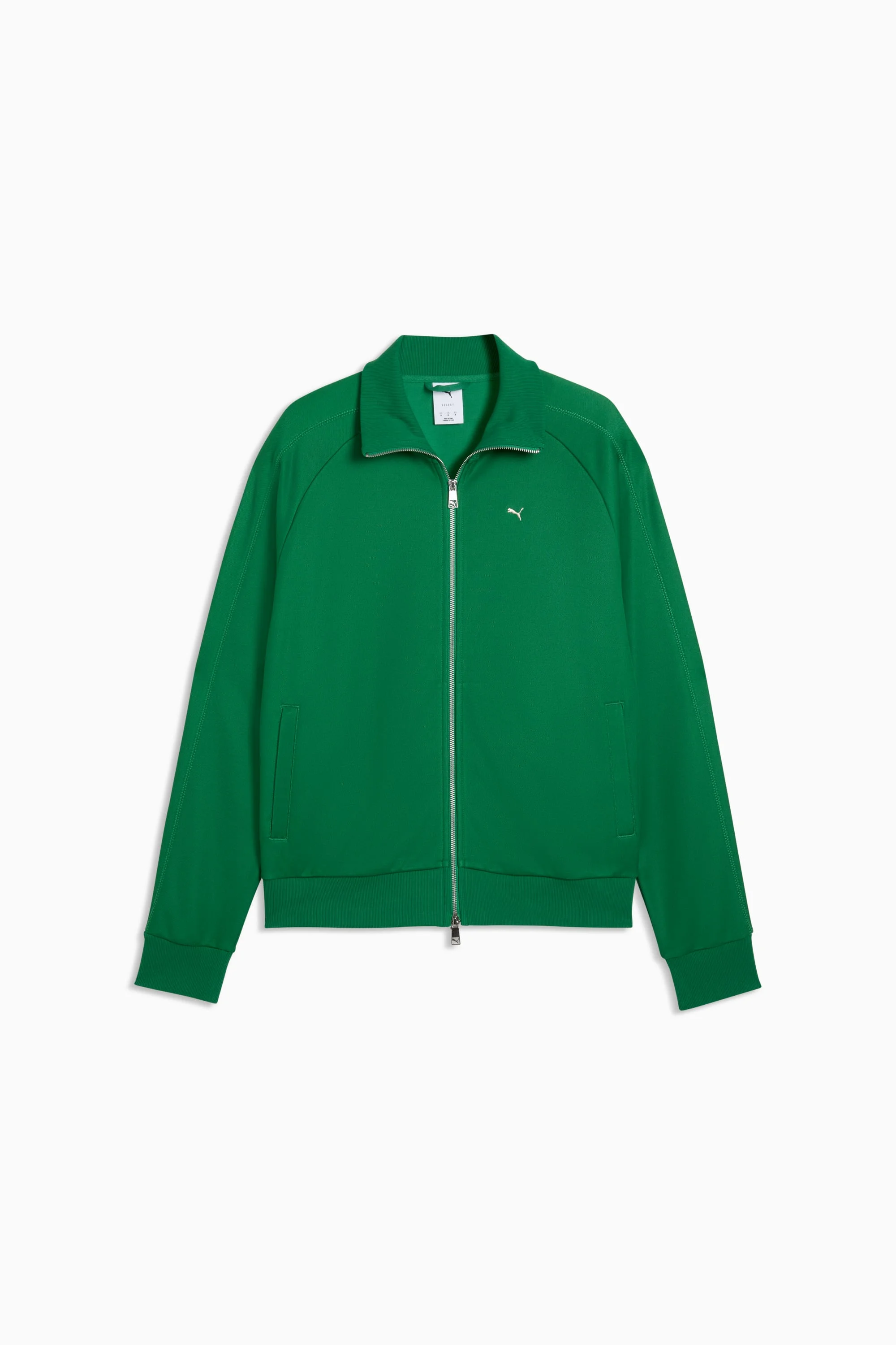 PRODUCT STORY The T7 tracksuit made its debut in 1968 and has been changing the game ever since. With its signature side panels, clean cutlines, and unmistakable PUMA DNA, the T7 has achieved icon status. This season we've amplified the classic with a bold colour palette, a range of relaxed and cropped fits, and an oversized PUMA Cat Logo for extra attitude. This track jacket shows off classic T7 details. FEATURES & BENEFITS - Made with at least 30% recycled materials. DETAILS - Style: 634714_86 - Color: Archive Green - Fit: Relaxed - Main material type: Spacer - Neck: Stand up collar - Long sleeves - Closure: Full zip with two-way zip pull - Length: Standard jacket - Rib collar, cuffs and hem MATERIAL INFORMATION - Shell: 62% cotton, 38% polyester - Pocket Bag: 100% cotton - Rib: 96% cotton, 4% elastane