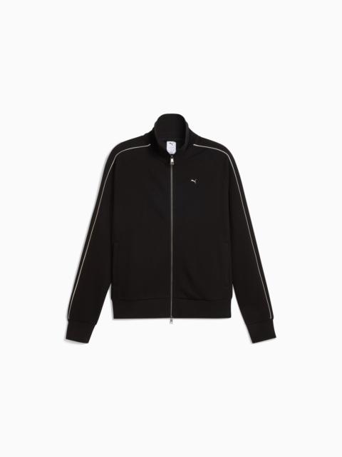 PRODUCT STORY The T7 tracksuit first debuted in 1968 and has been redefining style ever since. Today, it remains a timeless streetwear essential, instantly recognizable for its classic design, tapered side panels, and PUMA branding. Now it's back with modern updates and refined details—combining heritage with fresh energy for a new generation. FEATURES & BENEFITS - Made with at least 30% recycled materials. DETAILS - Style: 632327_41 - Color: Flat Bronze - Fit: Relaxed - Main Material: Pique - Neck: Stand up collar - Long sleeves - Fastener: Full zip with two-way zip - Length: Regular - Ribbed collar, cuffs and hem - Pockets: Zipped side pockets - Signature PUMA T7 (7cm) stripes MATERIAL INFORMATION - Shell: 50% cotton, 47% polyester, 3% elastane - Pocket Bag: 100% cotton - Rib: 96% cotton, 4% elastane