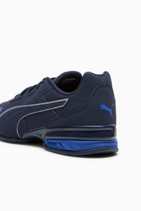 PRODUCT STORY The Tazon 7 is the Tazon runner you've grown to love with a bold new upper. The upper features a PUMA Formstrip graphic with overlays, like an embedded PUMA Cat on the toe. See you on the street. FEATURES & BENEFITS - SOFTRIDE: Soft foam designed for all-day cushioning and comfort - The upper of the shoes is made with at least 20% recycled materials. DETAILS - Style: 310378_07 - Color: PUMA Navy-PUMA Silver-Vivid Blue - Outsole: 100% Rubber - Midsole: TPU shank and EVA heel piece - Upper: Synthetic with synthetic overlays - PUMA Formstrip - Closure: Laces - Surface: Road MATERIAL INFORMATION - Midsole: 100% Synthetic - Sockliner: 100% Textile - Outsole: 100% Rubber - Upper: 100% Synthetic - Lining: 100% Textile