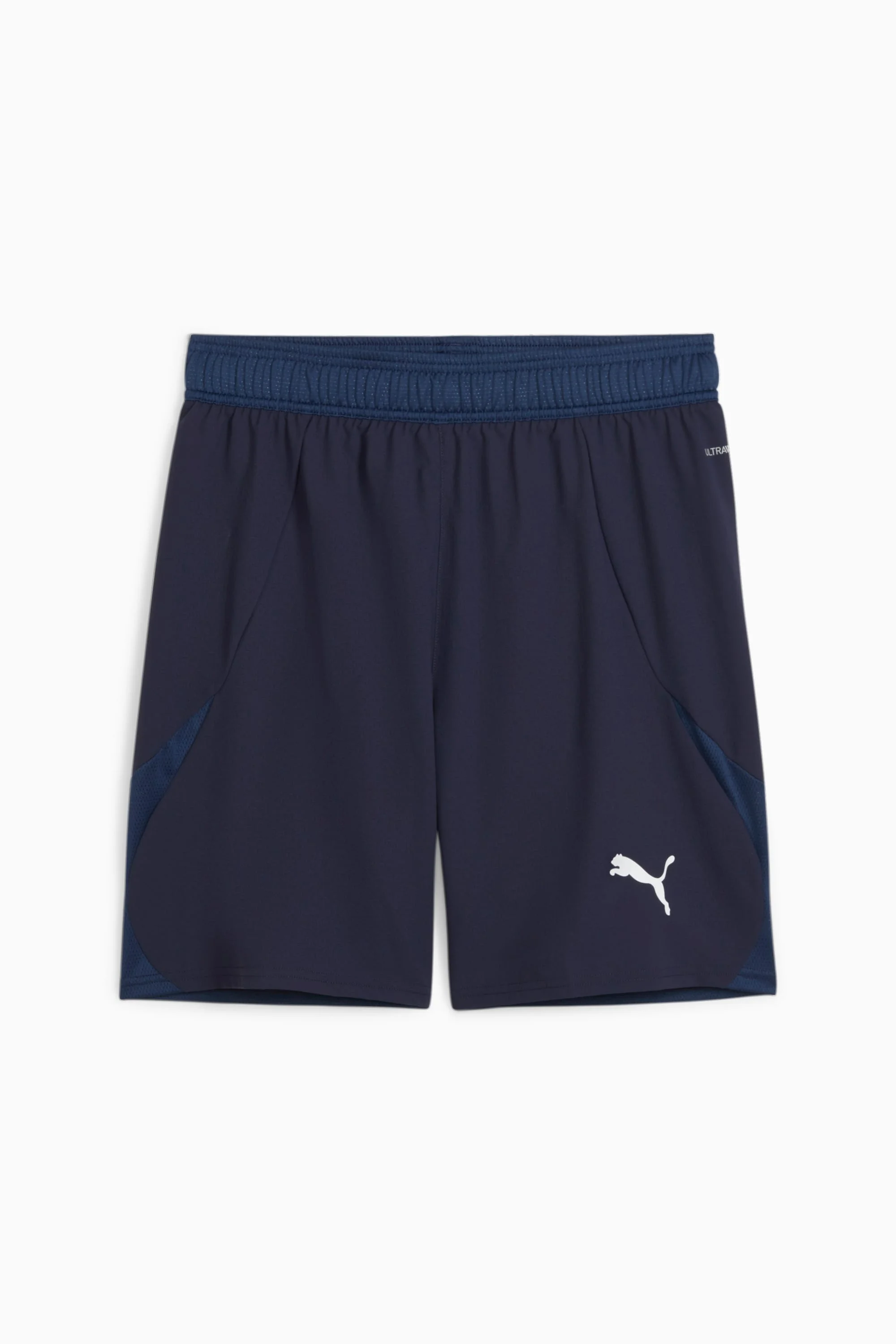 PRODUCT STORY Meet the next generation of PUMA Soccer. As seen on PUMA Soccer's top clubs, these soccer shorts are constructed for the highest level of performance using a light, breathable, highly engineered fabric and form-fitting cuts that fulfil the needs of the game's very best athletes. FEATURES & BENEFITS - ULTRAWEAVE: Ultra-light, engineered fabric with a structured, 4-way stretch that reduces weight and friction. Built for athletes looking to increase speed and strength - dryCELL: Performance technology designed to wick moisture from the body and keep you free of sweat during exercise - Made with 100% recycled material excluding trims & decorations. DETAILS - Style: 705743_06 - Color: PUMA Navy-PUMA White-Persian Blue - Regular fit - Fabric: Dobby - Regular Fit - Medium rise - Above knee length - Elastic waistband - Flat tip ends, self folded and bartacked - PUMA Cat branding on right chest MATERIAL INFORMATION - Shell: 100% polyester - Back Panel: 100% polyester