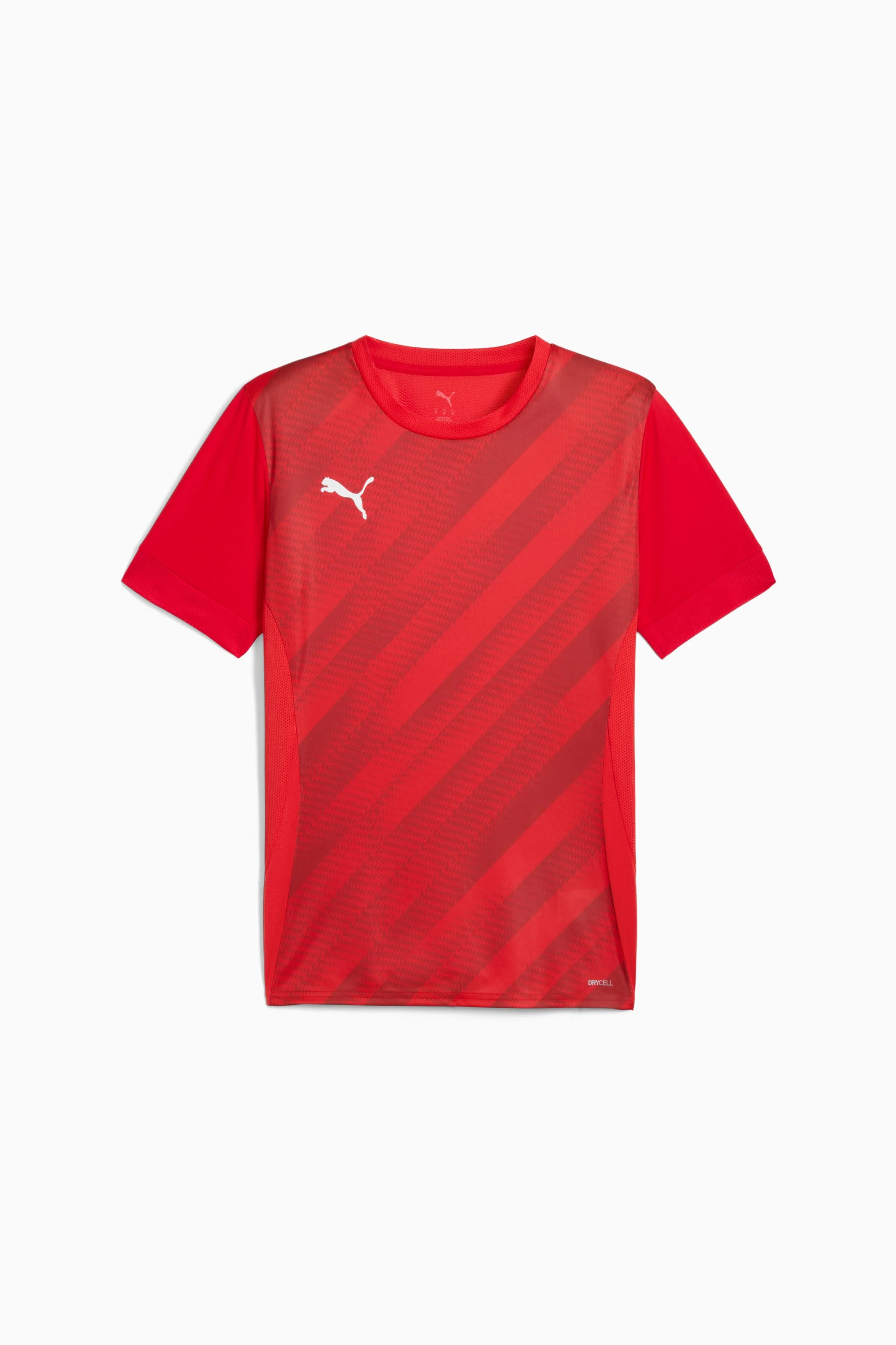 PRODUCT STORY The teamGOAL collection blends high-performance materials with a stylish, modern design, ensuring your team stays ready to excel at every level of the game. FEATURES & BENEFITS - dryCELL: Highly functional materials draw sweat away from your skin and help keep you dry and comfortable during exercise - Made with 100% recycled material excluding trims and decorations DETAILS - Style: 707112_01 - Color: PUMA Red-PUMA White-PUMA Red - Fit: Regular - Full mesh back for breathability and comfort - Neck: Crew neck - Short sleeves - Length: Regular - PUMA branding details MATERIAL INFORMATION - Back Body: 100% polyester - Front Body: 100% polyester - Sleeve: 100% polyester