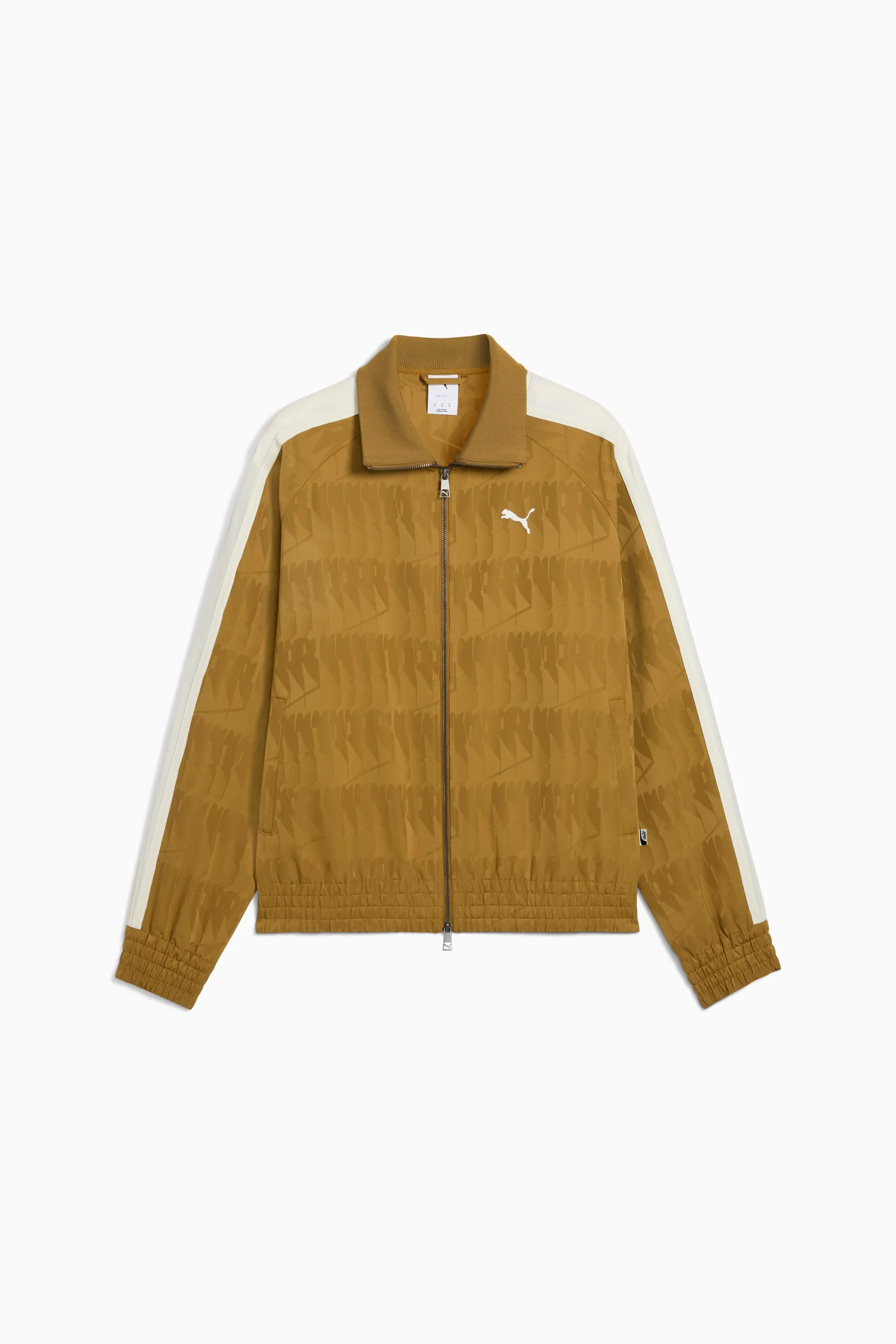 PRODUCT STORY A continuation of the smash-hit "NeverWorn" collection, The NeverWorn VI takes PUMA's history and remixes it for the modern world. This collection is a celebration of our archive and a return to a retro soccer aesthetic with relaxed fits, knits, and new all-over patterns. FEATURES & BENEFITS - Made with at least 90% recycled materials DETAILS - Style: 632509_69 - Color: Honey Butter-AOP - Relaxed fit - Stand up collar neck - Long sleeves - Full zip with 2-way metal zip - Standard jacket length - Elasticated cuffs and hem - Side zip pockets - Signature T7 panels down the sleeves - All-over graphic print MATERIAL INFORMATION - Inserts: 100% polyester - Upper Pocket Bag: 80% polyester, 20% cotton - Shell: 100% polyester - Rib: 90% polyester, 10% elastane
