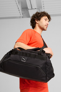 PRODUCT STORY Gear up for your ultimate workout with this training must-have. An adjustable, padded strap and sturdy handles let you haul heavy gear while multiple pockets keep essentials close. Front and side mesh pockets plus an internal shoe compartment give everything its place so you can focus on smashing personal bests. Pack it all in and get training. FEATURES & BENEFITS - Made with at least 50% recycled materials DETAILS - Style: 090920_01 - Color: Puma Black - Two-way U-shape zip opening into main compartment - Zip opening into front and back pocket - Adjustable webbing shoulder strap with shoulder pad, two webbing carry handles with padded connector - Side mesh pockets - PUMA branding details MATERIAL INFORMATION - Mesh: 100% polyester