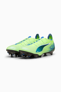 PRODUCT STORY Fasten your seatb. . .we mean laces. With ULTRA 5 CARBON, you get the speed and sensation of a finely tuned machine at your feet. Based on engineering insights from PUMA Motorsport, the brand-new SPEEDSYSTEM CARBON outsole is made of carbon fiber, which makes it 32% springier than the non-carbon version. PUMA’s FastTrax stud design is precision-engineered to take you from kick-off to back-of-the-net faster than you can say: lights out. FEATURES & BENEFITS - ACCELERATION: SPEEDSYSTEM carbon outsole combining springy carbon-fibre material for rapid propulsion with an innovative stud placement and orientation for faster acceleration - TRACTION: FastTrax stud design using insights from academic research and traction studies to provide more traction while accelerating, cutting and breaking - STABILITY: PWRTAPE SQD support frame stabilizes the foot inside the boot without hindering agility or freedom of movement - The upper of this shoe is made with at least 30% recycled materials DETAILS - Style: 107684_03 - Color: Fizzy Apple-PUMA White-Bluemazing - Lightweight mesh upper - Ultra-lightweight removable sockliner - OrthoLite® heel cushioning for a secure lockdown - GripControl Pro skin: Super-thin textured skin designed for improved ball control no matter the pitch conditions - SPEEDSYSTEM carbon outsole - Regular to narrow fit - Low-cut slip-on construction - FG: Suitable for use on firm ground MATERIAL INFORMATION - Sockliner: 100% Textile - Outsole: 100% Synthetic - Upper: 88.20% Synthetic, 11.80% Textile - Lining: 62.15% Textile, 37.85% Synthetic