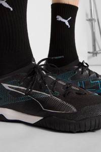 PRODUCT STORY How fast is the ULTRA 5? Fasten your seatbelt. PUMA's newest ULTRA soccer cleats are here. They feature a lightweight mesh upper, PWRTAPE support frame for stability, and GripControl Pro skin for decisive ball command. The low-profile rubber outsole and ProFoam LITE midsole keep you agile on hard surfaces and artificial grass. Play at full throttle. FEATURES & BENEFITS - The upper of the shoe is made with at least 30% recycled materials - PWRTAPE: Carbon fibre plate engineered to stabilise the midsole while maximising energy transfer - SKILL: Textured high-density mesh layer with a GripControl Pro finish for enhanced ball grip and control - STABILITY: PWRTAPE support frame stabilizes the foot inside of the boot to enable rapid changes of direction DETAILS - Style: 108173_02 - Color: PUMA Black-PUMA Silver-Bright Aqua - Regular width - Lightweight mesh upper material - Lace closure - Low-profile multi-studded rubber outsole and ProFoam LITE midsole - Ortholite® O-Therm™ aerogel-infused insole blocks out the heat, keeping the foot cool and comfortable - TT: Suitable for use on hard natural surfaces and artificial grass (2G) MATERIAL INFORMATION - Sockliner: 100% Textile - Outsole: 100% Synthetic - Upper: 87.98% Synthetic, 12.02% Textile - Lining: 62.18% Textile, 37.82% Synthetic