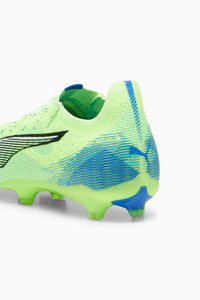 PRODUCT STORY How fast is ULTRA 5 PRO? Fasten your seatbelt. Featuring a brand-new SPEEDSYSTEM outsole combined with FastTrax stud design for a soccer cleat that's miles ahead of the competition. Three rounded studs on the lateral side let you switch between firm ground and artificial grass without compromising traction. Wherever you play, play at full throttle. FEATURES & BENEFITS - ACCELERATION: The SPEEDSYSTEM outsole design combines a high-performance fibre base material with a revolutionary stud system, maximising energy return for faster acceleration - TRACTION: PUMA's proprietary FastTrax studs are complemented with more rounded studs on lateral side for the most optimal traction on both firm ground and artificial grass - STABILITY: PWRTAPE support frame stabilises the foot inside the cleat to enable rapid changes of direction - The upper of this shoe is made with at least 30% recycled materials DETAILS - Style: 107685_03 - Color: Fizzy Apple-PUMA White-Bluemazing - Lightweight mesh upper enhanced with GRIPCONTROL PRO skin for decisive command over the ball with a PWRTAPE support frame - Regular to narrow fit - Low-cut slip-on construction - FG/AG: Suitable for use on both firm or artificial ground - PUMA branding details MATERIAL INFORMATION - Sockliner: 100% Textile - Outsole: 100% Synthetic - Upper: 87.72% Synthetic, 12.28% Textile - Lining: 62.18% Textile, 37.82% Synthetic