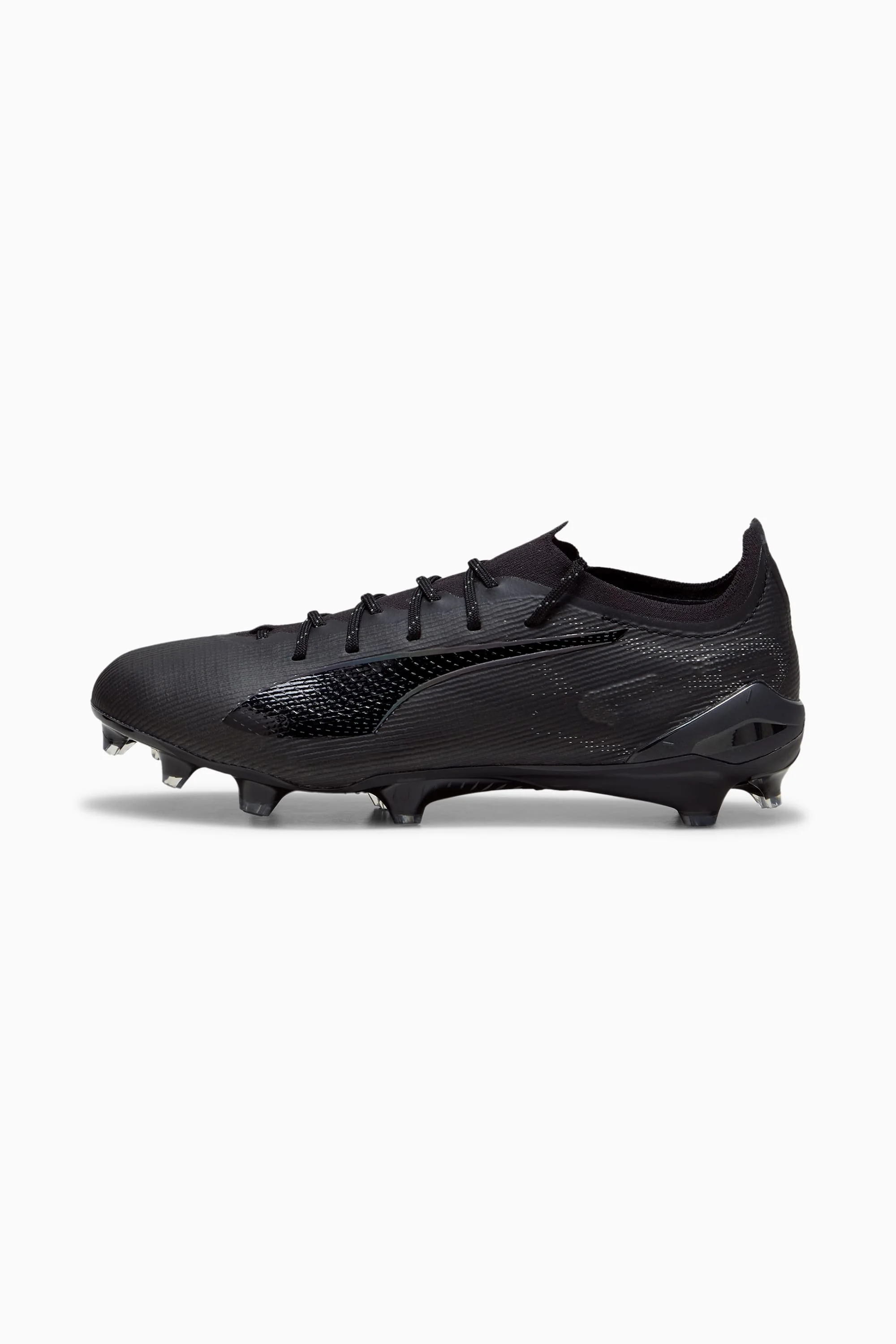 PRODUCT STORY Fasten your seatb. . .we mean laces. With the new ULTRA, you get the speed and sensation of a finely tuned machine at your feet. Featuring the brand-new SPEEDSYSTEM outsole and FastTrax stud design, precision-engineered to take you from kick-off to back of the net faster than you can say "Lights out". Play at full throttle. FEATURES & BENEFITS - ACCELERATION: The SPEEDSYSTEM outsole design combines a high-performance fibre base material with a revolutionary stud system, maximising energy return for faster acceleration - TRACTION: FastTrax stud design using insights from academic research and traction studies to provide more traction while accelerating, cutting and breaking - STABILITY: PWRTAPE SQD support frame stabilises the foot inside the boot without hindering agility or freedom of movement - The upper of this shoe is made with at least 50% recycled materials DETAILS - Style: 107683_02 - Color: PUMA Black-PUMA Silver-Shadow Gray - Lightweight mesh upper - Lightweight removable sockliner with NanoGrip technology keeps the foot from slipping inside the boot - OrthoLite® heel cushioning for better lockdown - SPEEDSYSTEM outsole - Regular to narrow fit - Low-cut slip-on construction - FG: Suitable for use on firm ground MATERIAL INFORMATION - Sockliner: 100% Textile - Outsole: 100% Synthetic - Upper: 86.62% Synthetic, 13.38% Textile - Lining: 79.50% Textile, 20.50% Synthetic