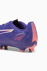 PRODUCT STORY How fast is ULTRA 5 PLAY? Fasten your seatbelt. Perfect for those who are just starting to fall in love with the beautiful game, this version of ULTRA comes with PUMA's brand-new SPEEDSYSTEM outsole and FastTrax stud design for the most optimal traction. These cleats have three rounded studs on the lateral side so you can switch between firm ground and artificial grass. Wherever you play, play at full throttle. FEATURES & BENEFITS - ACCELERATION: The SPEEDSYSTEM outsole design combines a high-performance fibre base material with a revolutionary stud system, maximising energy return for faster acceleration - TRACTION: PUMA's FastTrax studs are combined with more rounded studs on the lateral side for the most optimal traction on both firm ground and artificial grass - STABILITY: Debossed support frame designed to add stability to the lightweight upper - The upper of this shoe is made with at least 20% recycled materials DETAILS - Style: 107689_01 - Color: Lapis Lazuli-PUMA White-Sunset Glow - Lightweight synthetic upper material - SPEEDSYSTEM outsole - Regular to narrow fit - Low-cut regular tongue construction, fits various foot shapes - FG/AG: Suitable for use on firm or artificial surfaces MATERIAL INFORMATION - Sockliner: 100% Textile - Outsole: 100% Synthetic - Upper: 97.65% Synthetic, 2.35% Textile - Lining: 100% Textile