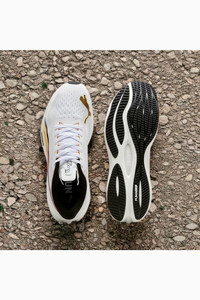 PRODUCT STORY The PUMA Velocity NITRO™ 3 – with this shoe, we're taking industry-best and bringing it to you. These kicks are all about speed and comfort thanks to advanced NITRO™ technology, offering superior responsiveness and cushioning in a lightweight package that feels like you're running on clouds. Plus, with the heel spoiler, you not only get a sleek look but you'll also benefit from enhanced stability for confident strides. Get ready to up your running game with the Velocity NITRO™ 3. It's not just a shoe; it's a statement. FEATURES & BENEFITS - NITRO™ Advanced technology providing superior responsiveness and cushioning in a lightweight package - PUMAGRIP: Lightweight rubber outsole provides grip for your most powerful toe-off - ENGINEERED MESH UPPER: Premium material engineered for breathability and reinforced with PWRTAPE DETAILS - Style: 377748_09 - Color: PUMA White-Sun Stream - TPU heel spoiler for stability - Cushioning level: medium - Lace closure - Heel-to-toe drop: 8mm - Pronation level: Neutral - Low boot MATERIAL INFORMATION - Sockliner: 100% Textile - Outsole: 100% Rubber - Upper: 63.70% Textile, 36.30% Synthetic - Lining: 100% Textile