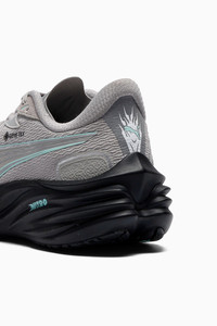PRODUCT STORY Running feels different for everyone – and that’s exactly how it should be. Whether you’re chasing a PR or just chasing the feeling, Velocity 4 is built to move with you. Any runner, any time, any distance, it can withstand, deliver, and surpass expectations. This version is equipped with a GTX Invisible FIT waterproof, windproof, and breathable membrane to keep you dry on the go. Plus, a full-length NITROFOAM™ midsole for cushioning and PUMAGRIP outsole for the best traction in the game. FEATURES & BENEFITS - GORE-TEX: Waterproof membrane that keeps your feet dry and warm while still providing optimum breathability. - NITROFOAM™: Innovative nitrogen-infused foam technology that uses premium raw materials to provide maximum energy return - PUMAGRIP: Outsole is made of durable rubber compound for multi-surface traction - The upper of the shoes is made with at least 20% recycled materials. DETAILS - Style: 311144_03 - Color: Gray Echo-PUMA Black-Mint Melt - Regular fit - Rounded toe - Fastener: Laces - Heel type: Flat - Heel-to-toe drop: 10.0mm - Support: Neutral - Stack height: 36mm / 26mm