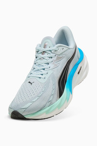 PRODUCT STORY Running feels different for everyone – and that's exactly how it should be. Whether you're chasing a personal record or just chasing the feeling, Velocity 4 is built to move with you. Any runner, any time, any distance, it can endure, perform, and exceed expectations. Our lightest Velocity yet features a full-length NITROFOAM™ midsole, improved breathability with new mesh in the upper, and a PUMAGRIP outsole for the best traction in the game. FEATURES & BENEFITS - BREATHABILITY: Premium engineered knit material engineered for breathability and stretch, reinforced with PWRTAPE for durability and lockdown - NITROFOAM™: Innovative nitrogen-infused foam technology that uses premium raw materials to provide maximum energy return - PUMAGRIP: Outsole is made of durable rubber compound for multi-surface traction - The upper of the shoes is made with at least 30% recycled materials. DETAILS - Style: 311140_06 - Color: Sea Glass-Speed Blue - Fit: Regular - Toe type: Rounded - Fastener: Laces - Heel type: Flat - Heel-to-toe drop: 10mm - Stack height 36mm / 26mm - Recommended for: neutral pronators MATERIAL INFORMATION - Sockliner: 100% Textile - Outsole: 100% Rubber - Upper: 59.73% Textile, 37.40% Synthetic, 2.87% Leather - cow - Lining: 100% Textile
