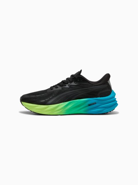 PRODUCT STORY Running feels different for everyone – and that's exactly how it should be. Whether you're chasing a personal record or just chasing the feeling, Velocity 4 is built to move with you. Any runner, any time, any distance, it can endure, perform, and exceed expectations. Our lightest Velocity yet features a full-length NITROFOAM™ midsole, improved breathability with new mesh in the upper, and a PUMAGRIP outsole for the best traction in the game. FEATURES & BENEFITS - BREATHABILITY: Premium engineered knit material engineered for breathability and stretch, reinforced with PWRTAPE for durability and lockdown - NITROFOAM™: Innovative nitrogen-infused foam technology that uses premium raw materials to provide maximum energy return - PUMAGRIP: Outsole is made of durable rubber compound for multi-surface traction - The upper of the shoes is made with at least 30% recycled materials. DETAILS - Style: 311140_04 - Color: PUMA Black - Fit: Regular - Toe type: Rounded - Fastener: Laces - Heel type: Flat - Heel-to-toe drop: 10mm - Stack height 36mm / 26mm - Recommended for: neutral pronators MATERIAL INFORMATION - Sockliner: 100% Textile - Outsole: 100% Rubber - Upper: 59.73% Textile, 37.40% Synthetic, 2.87% Leather - cow - Lining: 100% Textile