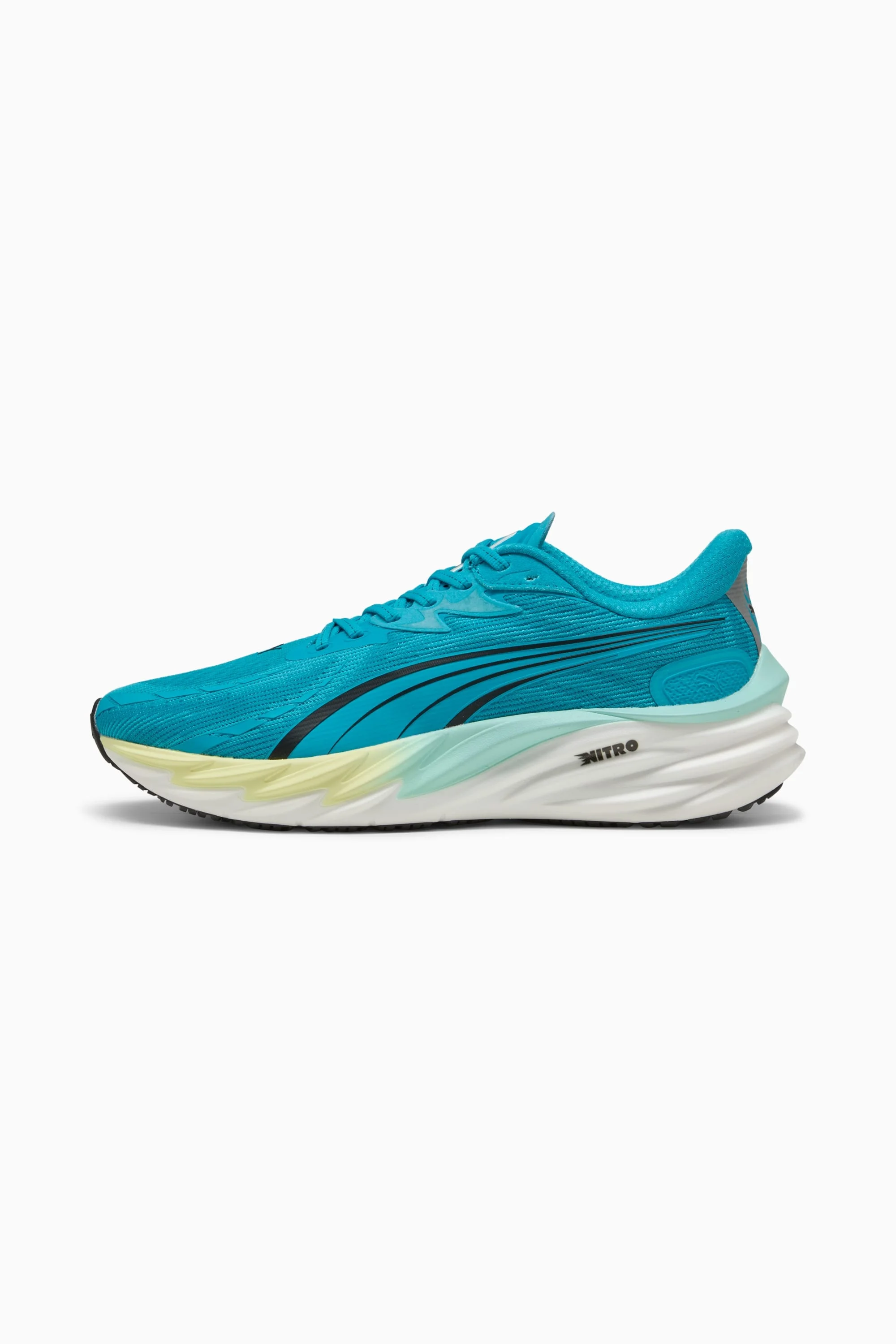 PRODUCT STORY Running feels different for everyone – and that's exactly how it should be. Whether you're chasing a personal record or just chasing the feeling, Velocity 4 is built to move with you. Any runner, any time, any distance, it can endure, perform, and exceed expectations. Our lightest Velocity yet features a full-length NITROFOAM™ midsole, improved breathability with new mesh in the upper, and a PUMAGRIP outsole for the best traction in the game. FEATURES & BENEFITS - BREATHABILITY: Premium engineered knit material engineered for breathability and stretch, reinforced with PWRTAPE for durability and lockdown - NITROFOAM™: Innovative nitrogen-infused foam technology that uses premium raw materials to provide maximum energy return - PUMAGRIP: Outsole is made of durable rubber compound for multi-surface traction - The upper of the shoes is made with at least 30% recycled materials. DETAILS - Style: 311140_07 - Color: Speed Blue-Gold Moon - Fit: Regular - Toe type: Rounded - Fastener: Laces - Heel type: Flat - Heel-to-toe drop: 10mm - Stack height 36mm / 26mm - Recommended for: neutral pronators