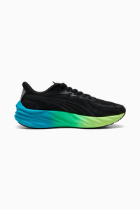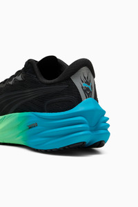 PRODUCT STORY Running feels different for everyone – and that's exactly how it should be. Whether you're chasing a personal record or just chasing the feeling, Velocity 4 is built to move with you. Any runner, any time, any distance, it can endure, perform, and exceed expectations. Our lightest Velocity yet features a full-length NITROFOAM™ midsole, improved breathability with new mesh in the upper, and a PUMAGRIP outsole for the best traction in the game. FEATURES & BENEFITS - BREATHABILITY: Premium engineered knit material engineered for breathability and stretch, reinforced with PWRTAPE for durability and lockdown - NITROFOAM™: Innovative nitrogen-infused foam technology that uses premium raw materials to provide maximum energy return - PUMAGRIP: Outsole is made of durable rubber compound for multi-surface traction - The upper of the shoes is made with at least 30% recycled materials. DETAILS - Style: 311140_05 - Color: PUMA Black-Speed Blue - Fit: Regular - Toe type: Rounded - Fastener: Laces - Heel type: Flat - Heel-to-toe drop: 10mm - Stack height 36mm / 26mm - Recommended for: neutral pronators MATERIAL INFORMATION - Sockliner: 100% Textile - Outsole: 100% Rubber - Upper: 59.73% Textile, 37.40% Synthetic, 2.87% Leather - cow - Lining: 100% Textile