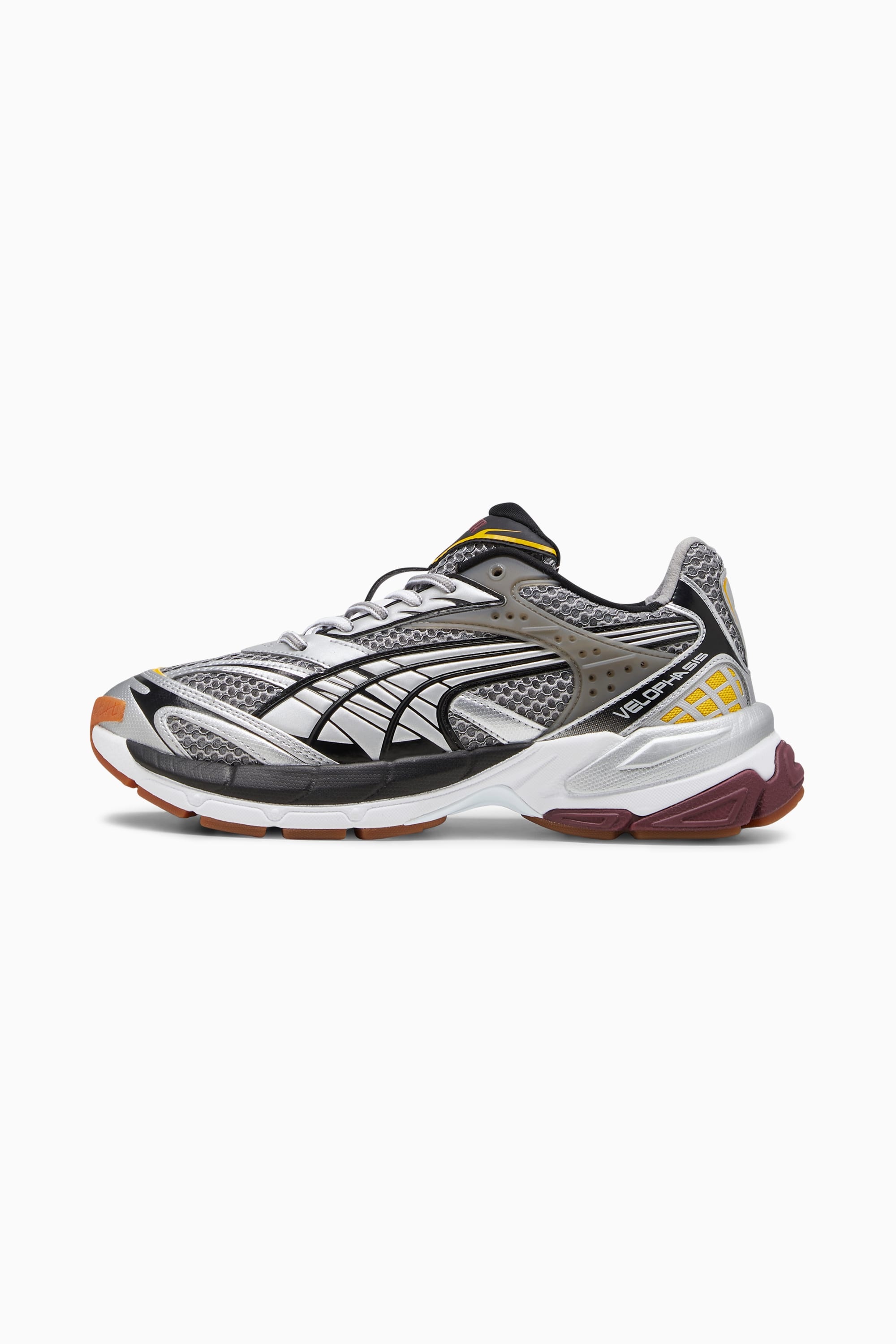 PRODUCT STORY The Velophasis takes inspiration from 2000s style and PUMA’s heritage performance running range, reimagined to create something new and authentic. An open mesh base, synthetic overlays, and a translucent moulded TPU piece combine for a techy, dynamic look that demands attention. Say hello to your new favorite sneakers. FEATURES & BENEFITS - VEGAN: Vegan certified product - SOFTFOAM+: Step-in comfort sockliner designed to provide soft cushioning thanks to its extra thick heel DETAILS - Style: 389365_05 - Color: PUMA Black-PUMA White - Open mesh base - Synthetic eyestay and overlays with printed and debossed lines - Translucent moulded TPU piece - CMEVA midsole - Rubber outsole - Synthetic leather PUMA Formstrip with printed and debossed lines - PUMA Wordmark and Velophasis branding on tongue MATERIAL INFORMATION - Midsole: 100% Synthetic - Sockliner: 100% Textile - Outsole: 100% Rubber - Upper: 72.81% Synthetic, 27.19% Textile - Lining: 100% Textile