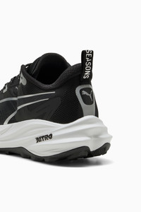 PRODUCT STORY Wherever the trail takes you, the Voyage NITRO™ 4 is ready. This trail running shoe features a structured yet breathable upper with PWRTAPE reinforcement for a secure fit, along with a NITROFOAM™ midsole for a cushioned and protective running experience during long days on the trail. The durable PUMAGRIP ATR rubber offers multi-directional traction and grip for steep climbs and changing conditions. FEATURES & BENEFITS - NITROFOAM™: Innovative nitrogen-infused foam technology that uses premium raw materials to provide maximum energy return - PUMAGRIP ATR: Outsole is made of our most durable rubber for best-in-class grip on varying terrains - BREATHABILITY: Premium engineered knit material engineered for breathability and stretch, reinforced with PWRTAPE for durability and lockdown - The upper of the shoes is made with at least 30% recycled materials. DETAILS - Style: 311041_01 - Color: PUMA Black-PUMA Silver - Fit: Regular - Toe Type: Rounded - Fastener: Laces - Heel type: Flat - Heel-to-toe drop: 6mm - Stack Height: 38mm / 32mm - Recommended for neutral pronators MATERIAL INFORMATION - Sockliner: 100% Textile - Outsole: 100% Rubber - Upper: 51.50% Synthetic, 48.50% Textile - Lining: 100% Textile