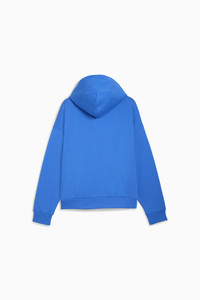 PRODUCT STORY Make mornings effortless with PUMA's Wardrobe Essentials. These are your go-tos for hectic days. Combining retro vibes with a modern edge, these versatile pieces keep you comfortable and stylish, no matter where your day takes you. FEATURES & BENEFITS - Made with at least 50% recycled materials. DETAILS - Style: 634364_13 - Color: Mountain Blue - Fit: Boxy - Main material: Fleece - Hooded, with drawcords - Long sleeves - Length: Short - Pockets: Kangaroo Pocket