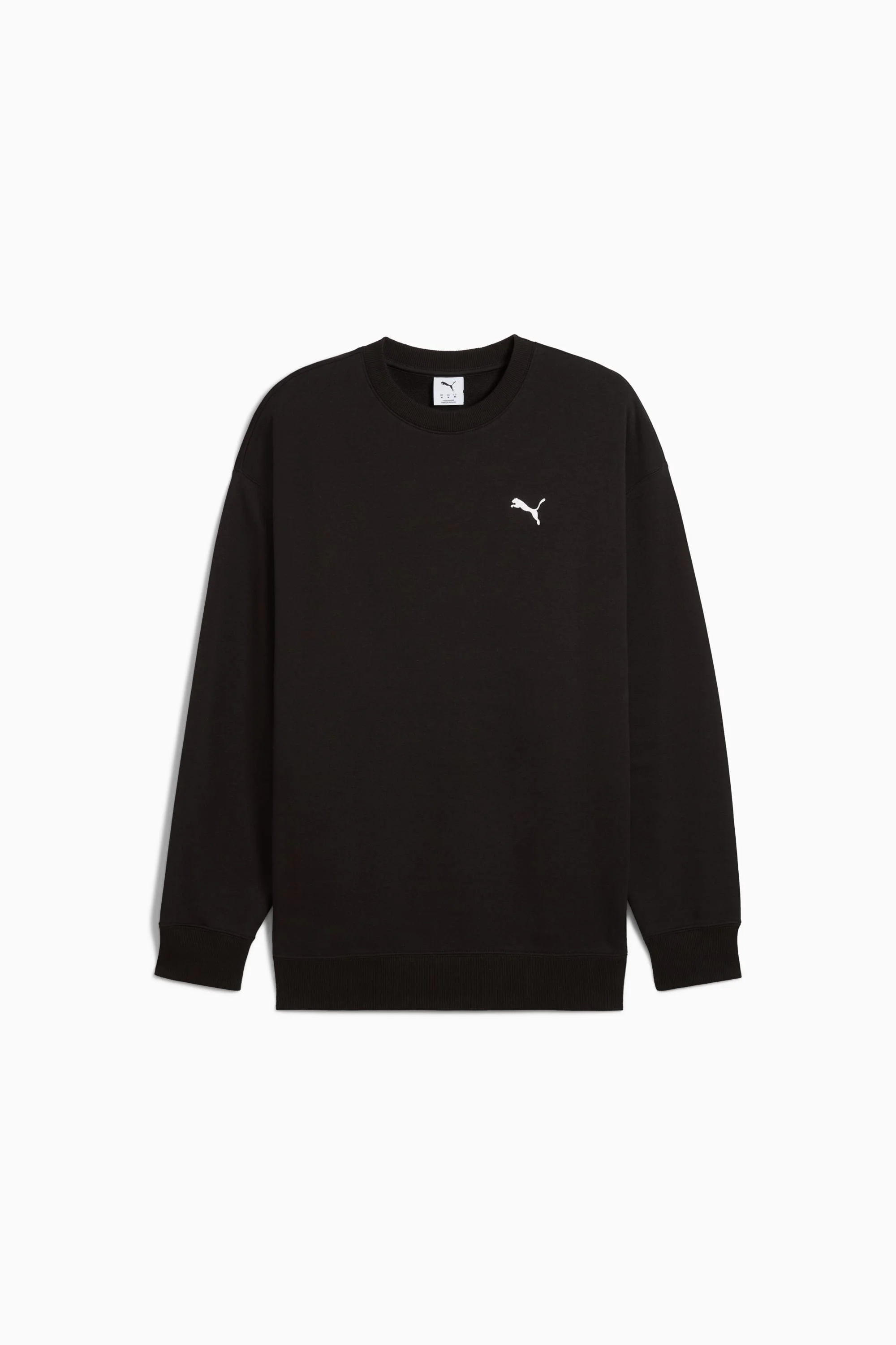 PRODUCT STORY Stay effortlessly cool with this PUMA crew. Featuring a logo on the chest and ribbed cuffs and hem, it's perfect for laid-back days or casual outings. Soft, relaxed fit for ultimate ease and style. FEATURES & BENEFITS - Made with at least 20% recycled cotton DETAILS - Style: 629650_01 - Color: PUMA Black - Relaxed fit - French Terry fabric - Regular length - Crew neck - Long sleeves - PUMA branding details MATERIAL INFORMATION - SHELL: 100% cotton - RIB: 96% cotton, 4% elastane