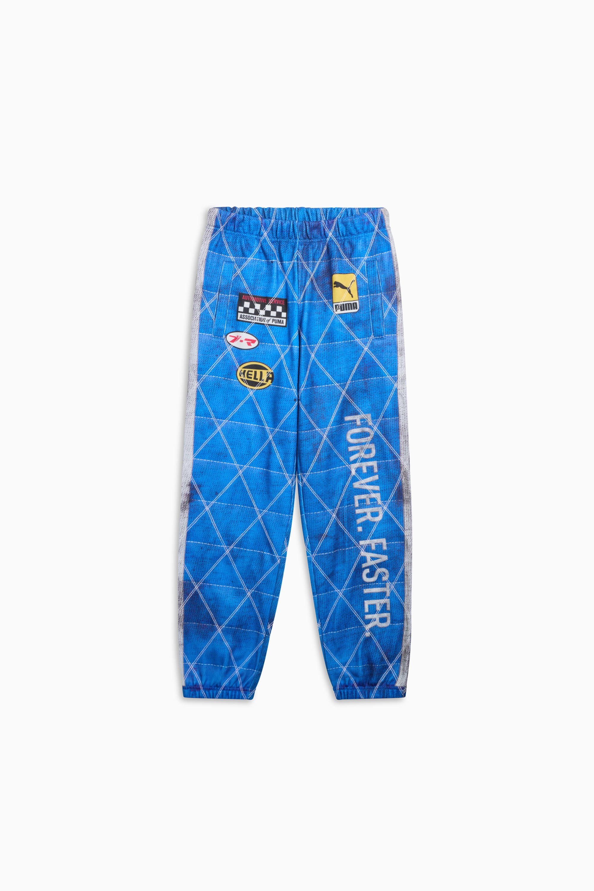 PRODUCT STORY Motorsport and streetwear come together in these A$AP ROCKY x PUMA sweatpants. With a slim fit to mimic the design of a race suit, these pants feature quilted diamond stitching over custom PUMA graphics. FEATURES & BENEFITS - warmCELL: highly functional and breathable materials that retain heat close to the body to maintain optimum temperature when it’s cold outside DETAILS - Style: 631123_01 - Color: Clyde Royal - 100% recycled polyester - Slim fit - Back pockets - Medium rise - Regular length - A$AP ROCKY x PUMA branding details MATERIAL INFORMATION - SHELL: 100% polyester - POCKET BAG: 100% cotton