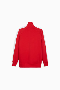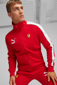 PRODUCT STORY A PUMA original, the T7 track-inspired collection made a name for itself with 7cm signature stripes and quickly became as popular on city streets as it was on the training grounds. Hidden away in our archives, the suit has been faithfully replicated, and is just as iconic today as it was back then. With sleeve striping and a sleek fit, this sporty Scuderia Ferrari jacket will have you bringing the classics back in style. DETAILS - Style: 625198_02 - Color: Rosso Corsa - Regular fit - PUMA cat logo and Scuderia Ferrari shield on the front - Italian flag tape along the arm - Elasticated Hems - Long sleeves - Regular Length - Collar - Full-zip Closure - Zip Pocket MATERIAL INFORMATION - UPPER POCKET BAG: 100% cotton - SHELL: 67% polyester, 33% cotton - POCKET BAG: 100% cotton - RIB: 97% cotton, 3% elastane