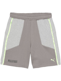 x Pleasures logo-print track shorts Highlights - Medium grey - Cotton - Jersey texture - Melange effect panel - Contrasting grosgrain ribbon trim - Two side inset pockets - Logo print at the leg and rear - Above-knee length - Rear zip-fastening pocket - French terry lining - Elasticated waistband with internal drawstring Imported Composition Cotton 100%
