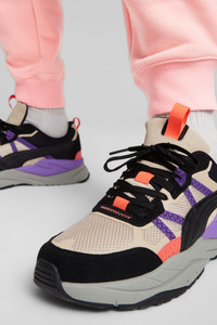 PRODUCT STORY Inspired by hiking trends and the great outdoors, this new addition to our X-Ray family bring something fresh. Quilted stitching, zigzag webbings and angular overlays define the updated upper. The chunky yet lightweight midsole offers cushioning with every step, while the step-in comfort sockliner helps you go the distance. FEATURES & BENEFITS - CMEVA: PUMA's compression-moulded EVA material for lightweight performance - Recycled Material: The upper of this shoe is made with at least 20% recycled materials and the bottom is made with at least 10% recycled materials, as a step toward a better future - SOFTFOAM+: Step-in comfort sockliner designed to provide soft cushioning thanks to its extra thick heel DETAILS - Style: 392317_01 - Color: Granola-PUMA Black-Purple Glimmer - Mixed material upper with angular heat-pressed overlays and debossed details - TPU eyelets - Chunky CMEVA midsole - Rubber outsole - PUMA No. 1 Logo on the tongue - PUMA Formstrip on the medial and lateral sides MATERIAL INFORMATION - Sockliner: 100% Textile - Outsole: 60% Rubber, 40% Synthetic - Upper: 42.63% Synthetic, 30.51% Textile, 26.86% Leather - cow - Lining: 100% Textile