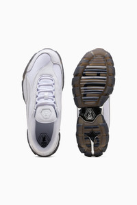 PRODUCT STORY PUMA x SKEPTA goes ice white. This flooded white collection is inspired by Skepta’s iconic aesthetic. Two re-designed Skopes with iced out soles are paired with a suite of elevated streetwear essentials: a jacket and short tracksuit, a vest and a cap. Skepta’s signature style meets PUMA’s design precision and streetwear edge. DETAILS - Style: 404444_01 - Color: PUMA White-PUMA Black - Heel type: Flat - Closure: Lace closure - Upper: Leather and mesh - Sole: Chunky semi transparent rubber sole - Insert: Chrome - Logo patch at tongue - PUMA branding details MATERIAL INFORMATION - Sockliner: 100% Textile - Outsole: 100% Rubber - Upper: 53.40% Leather - cow, 38.97% Textile, 7.63% Synthetic - Lining: 100% Textile