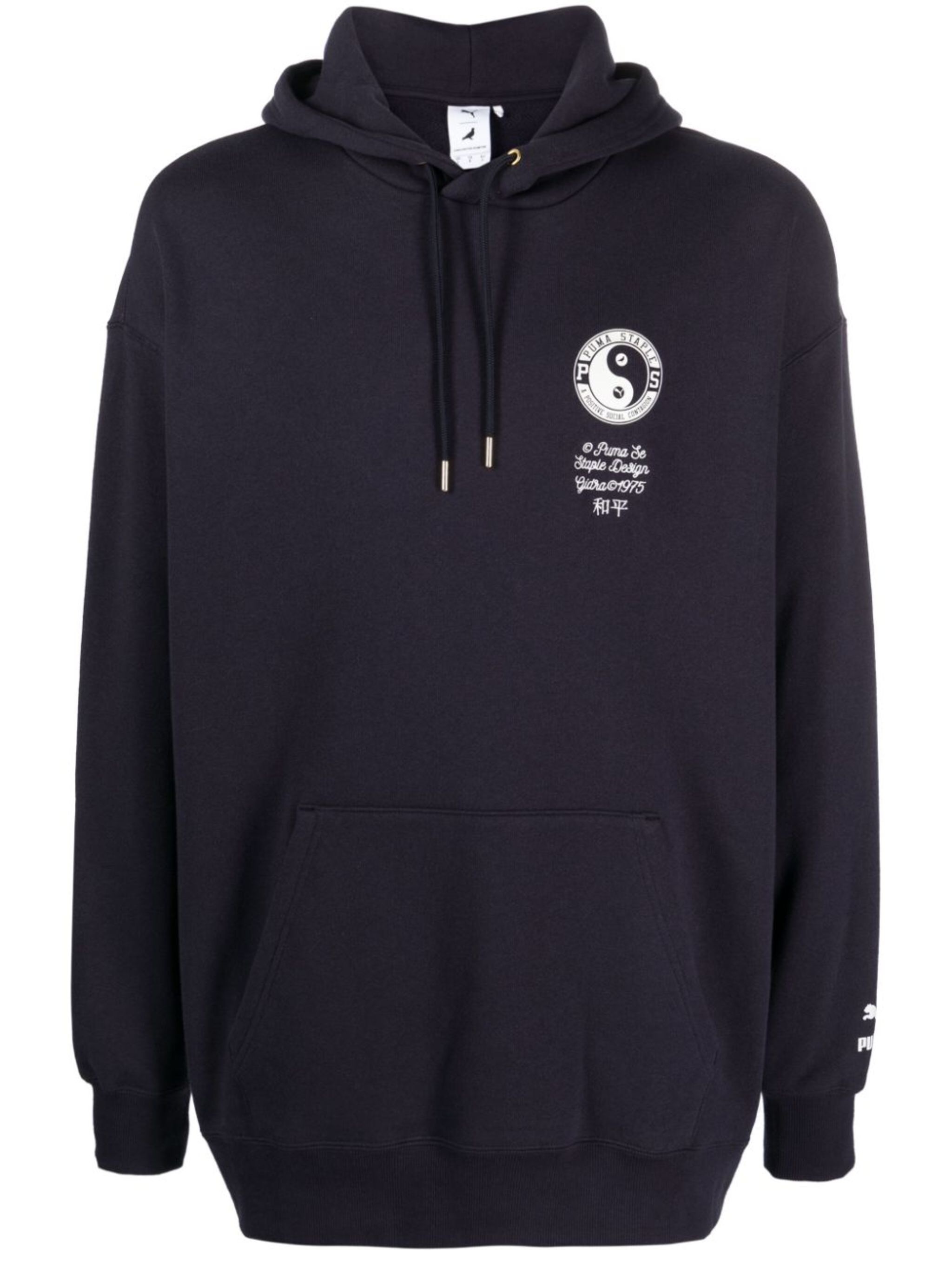 navy blue cotton logo print at the chest graphic print to the rear embroidered logo at the chest long sleeves drawstring hood front pouch pocket straight hem Size & Fit Model Measurements: Bust: 94cm Height: 186cm Hips: 93cm Waist: 78cm