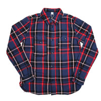 The hiatus is over - Pure Blue Japan returns to Brooklyn Clothing! I has been some time since we have had any PBJ tops in particular, so we are quite excited for this new stock. This is a brushed flannel double pocket workshirt, featuring a mid-heavyweight Japanese flannel, double brushed on both the exterior and interior for a super cozy and plush handfeel for some nice heat retention. It features two traditional asymmetrical workshirt pockets as per the vintage inspiration behind the piece, with the right pocket offering substantial vertical depth for belongings, as well as a hidden pocket. Meanwhile, the left side features a smaller, spade shaped pocket to keep the design interesting, but it also serves its purpose well for smaller items, like keys or earbuds. Available in 3 versatile colourways for 2024: Navy, olive green, and camel yellow. - 100% cotton - Japanese brushed flannel - Asymmetrical workshirt pockets - Large double-entry right pocket - Spade-shaped left pocket - Chainstitch construction & runoff - Tonal urea buttons Size up from your usual size.