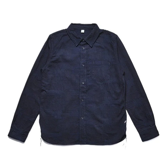 2239-ID Woven Jacquard BORO Patchwork Shirt - Double Indigo