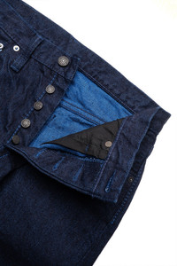 - Color: Indigo x Blue - 14oz PBJ Original Slubby Japanese Selvedge Denim - Wide straight fit - 100% Cotton - Navy Leaf Version - Blue In Green Original Sheepskin Black Leather Patch - 100% Cotton Thread Sewing Construction - One Wash - Black Herringbone Twill Pocket Lining - Made In Japan Note: Customers typically go up 1 to 2 sizes. Also available in Denver