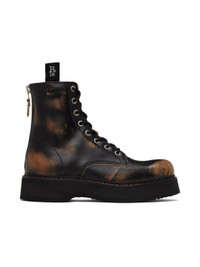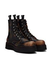 Handcrafted ankle-high buffed leather boots in black. Bleach effect throughout. · Lace-up closure · Webbing pull-loops at collar · Zip closure at heel · Foam rubber platform midsole · Treaded rubber outsole · Platform: H1.75 in Supplier color: Remove