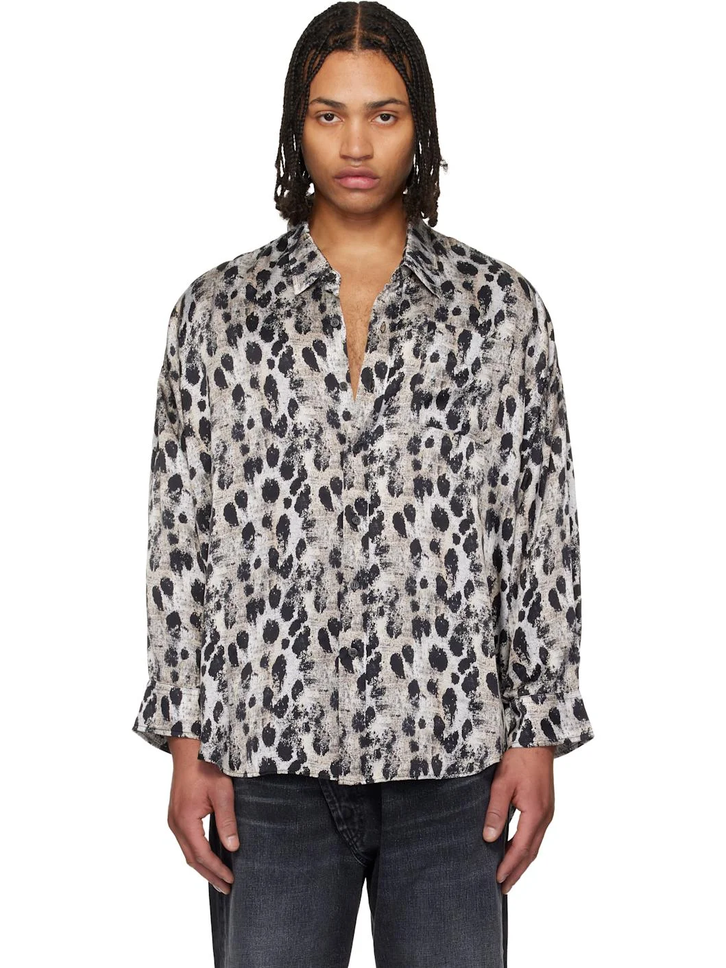 Silk charmeuse shirt. · Leopard pattern printed throughout · Spread collar · Button closure · Patch pocket at chest · Shirttail hem · Dropped shoulders · Barrel cuffs Supplier color: Black Silver Leopard 100% silk. Made in Italy 261021M192003