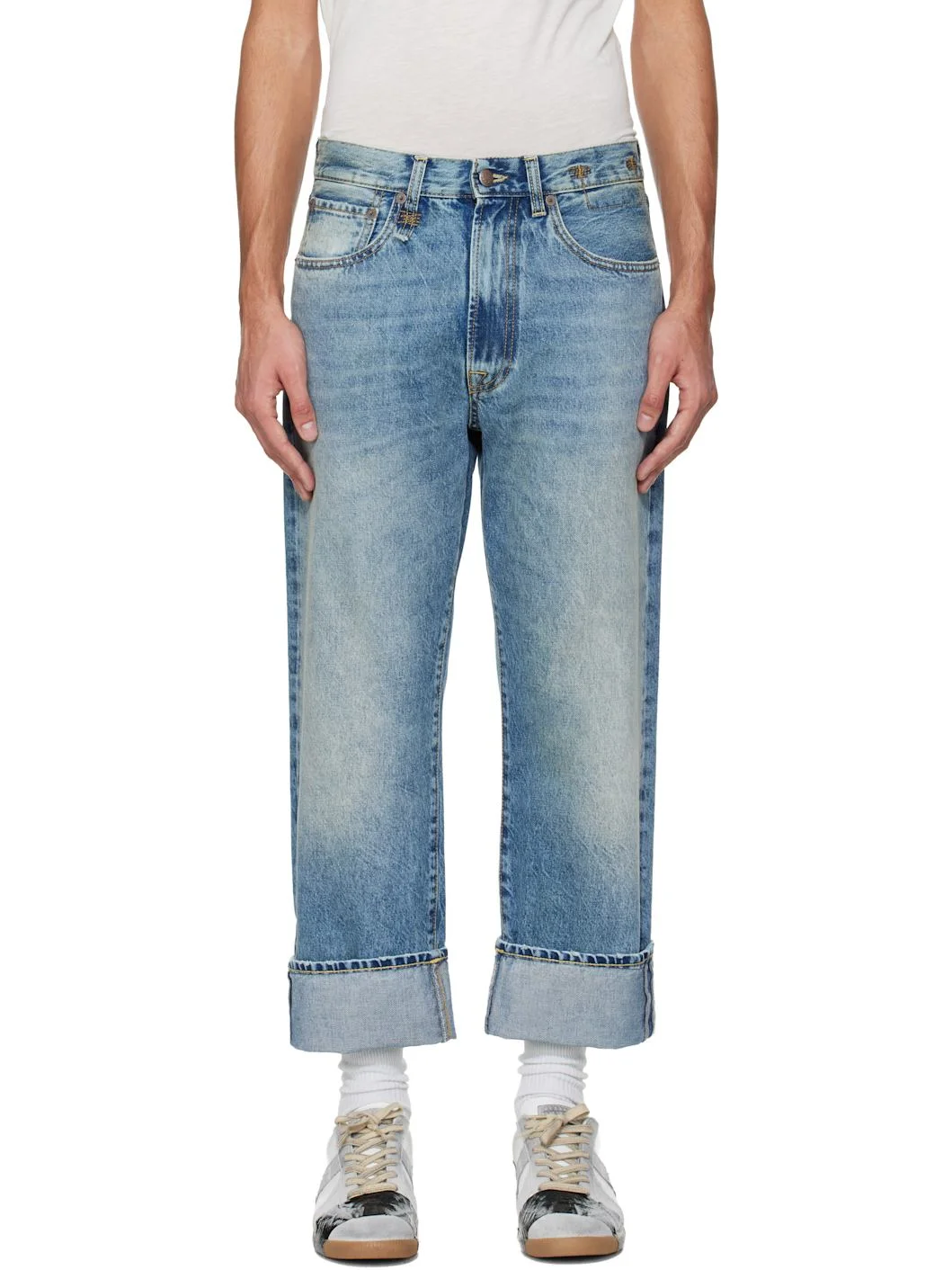 Non-stretch denim jeans. · Fading and whiskering throughout · Loose-fit · Belt loops · Five-pocket styling · Zip fly · Rolled cuffs · Leather logo patch at back waistband · Contrast stitching in tan Supplier color: Jasper Body: 100% cotton. Trim 1: 65% polyester, 35% cotton. Trim 2: 100% leather. Made in Italy 252021M186019