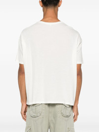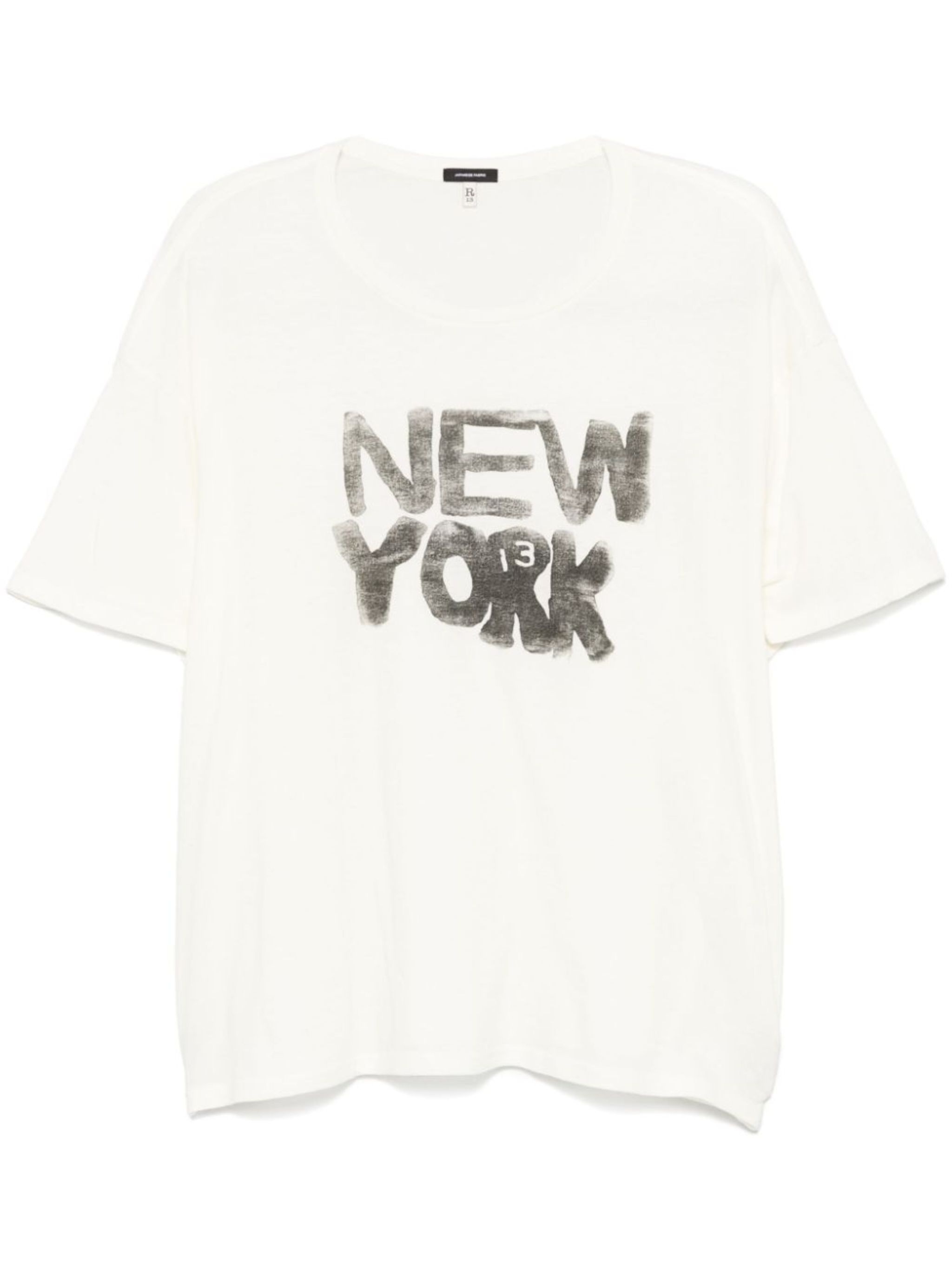white crew neck drop shoulder short sleeves Size & Fit Model Measurements: Height: 1.86 m Bust/Chest: 91.0 cm Hips: 93.0 cm Waist: 72.0 cm Model wears size L Fabric and Care Designer Style ID: R13WK141K118A Designer Colour: K118A ECRU Composition: Cashmere 5%, Cotton 95% Washing instructions: Machine Wash