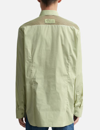 - Raf Simons - Classic Shirt With Net Insert - Regular fit - Spread collar - Button closure - Long sleeves - Buttoned cuffs - Mesh panel at the yoke - Woven logo label at the yoke - Curved hem - Color: Light Green Mint - Material: 100% Cotton - See more Shirts and Clothing SIZING - Model wears size S - Model measures: Height 188cm, Chest 38”/96cm, Waist 30”/78cm, Hip 37”/94cm