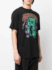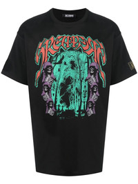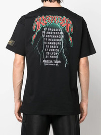graphic-print short-sleeve T-shirt Raf Simons updates this classic black T-shirt with statement graphics inspired by tour dates. Cut to an oversized silhouette, the design exhibits the brand's street-led style. Imported Composition Cotton 100% SIZE & FIT Model measurements Height 6 ft 2 in(1.87 m) Bust/Chest 37.4 in(95 cm) Hips 35.8 in(91 cm) Waist 28.7 in(73 cm) FittingInformation This piece fits true to size. We recommend you get your regular size Cut for a loose fit Made with a mid-weight fabric