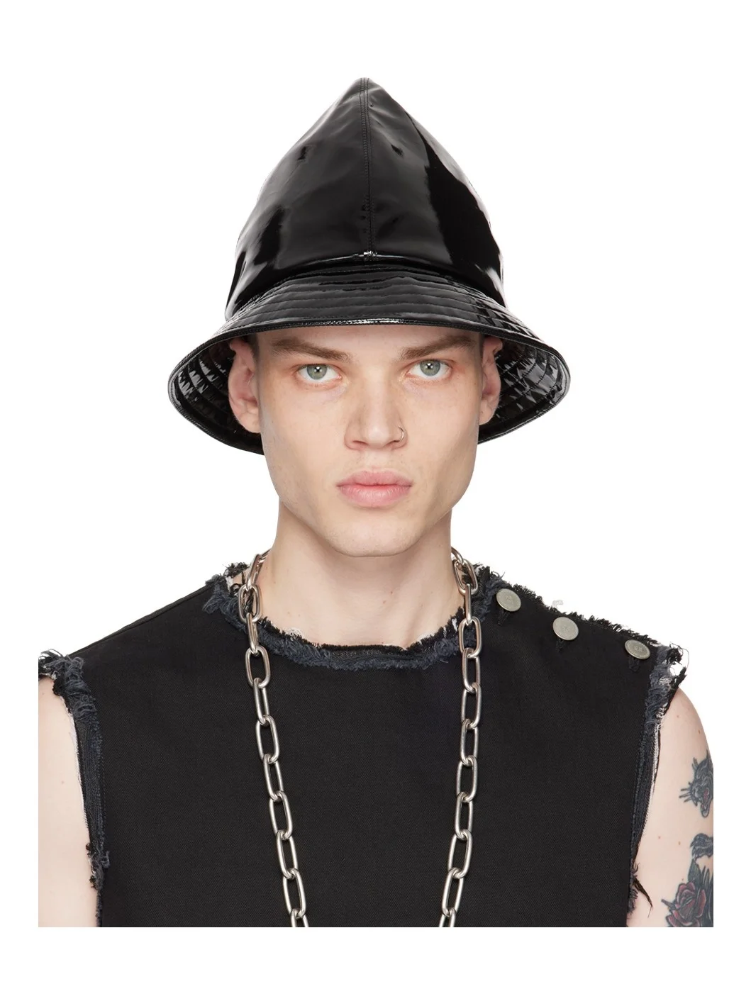 Patent faux-leather bucket hat in black. · Paneled construction · Logo-woven satin lining Supplier color: Black