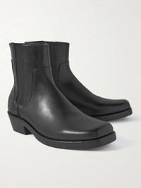 An future-focused approach to design has been the constant theme throughout Raf Simons' illustrious career. Inspired by classic Western styles, these boots are crafted from leather with squared-off toes and set on Cuban heels. The elasticated gussets make them easy to slip on and off. Size & Fit - Fits true to size. Take your normal size - Only available in full sizes, go up to the nearest whole size if you take a half size - European sizing Details & Care - Black leather - Zip fastening