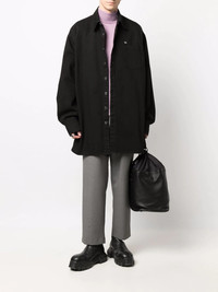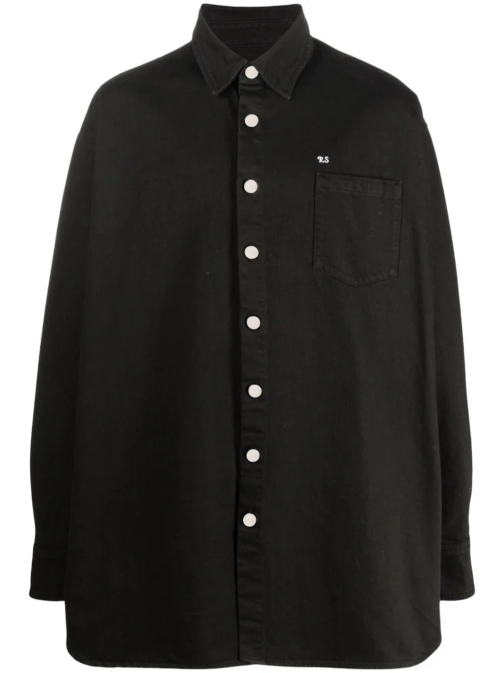 oversized logo denim shirt Raf Simons’ disruptive sense of style is illustrated by the dramatically oversized cut of this denim shirt. An iconic silhouette, the piece is accented with an initials patch to the rear for a signature look. Made in Italy Composition Cotton 100% SIZE & FIT Model measurements Height 6 ft 1 in(1.86 m) Bust/Chest 35.43 in(90 cm) Hips 35.43 in(90 cm) Waist 29.92 in(76 cm) Measurement SLEEVE LENGTH 25.98 in(66 cm) Shoulder Width 7.48 in(19 cm) LENGTH 32.67 in(83 cm) FittingInformation This piece fits true to size. We recommend you get your regular size Cut for a loose fit Made with a mid-weight non-stretch fabric Washing instructions Machine Wash
