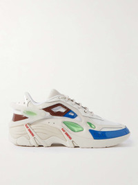 Part of the 'Runner' range, these 'Cylon-21' sneakers capture Raf Simons' future-forward vision. They have leather uppers trimmed with mesh and colourful rubber. Removable heel plates add protection and allow you to switch up the styling. Size & Fit - Fits true to size. Take your normal size - Only available in full sizes, go up to the nearest whole size if you take a half size - European sizing Details & Care - Multicoloured leather (Calf), white mesh, green and cream rubber - Lace-up - Style number: HR740010L - Made in Italy