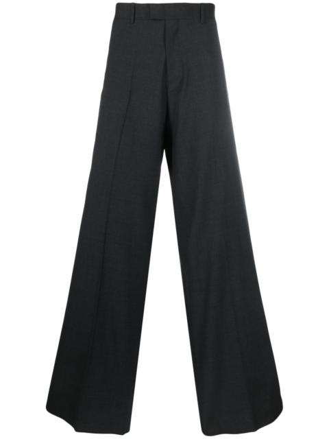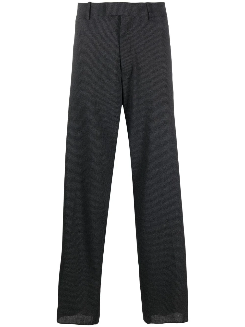 straight-leg trousers Raf Simons' minimalism stands out in this pair of trousers, crafted in dark grey wool. True to the understated design, the pair's only branding appears as a logo patch on the rear. Highlights - Dark grey - Wool blend - Concealed front fastening - Belt loops - Two side inset pockets - Two rear flap pockets Made in Italy Composition Polyester 80%, Wool 20% SIZE & FIT Model measurements Height 6 ft 1 in(1.86 m) Bust/Chest 36.61 in(93 cm) Hips 37 in(94 cm) Waist 28.74 in(73 cm) FittingInformation Designed with a wide leg, offering a loose and roomy fit Made from a midweight non-stretch fabric This piece fits true to size – take your usual size