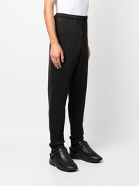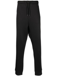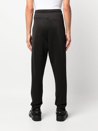 tapered track pants These track pants from Raf Simons present a minimal design. Offered in all black, the tapered silhouette boasts small logo lettering on the front. Highlights - Black - Logo lettering - Drawstring fastening waist - Logo lettering - Two side inset pockets - Tapered leg Imported Composition Polyester 100% SIZE & FIT Model measurements Height 5 ft 10 in(1.77 m) Bust/Chest 35.03 in(89 cm) Hips 35.43 in(90 cm) Waist 23.62 in(60 cm) FittingInformation This piece fits true to size. We recommend you get your regular size Cut for a slim fit Made with a mid-weight fabric