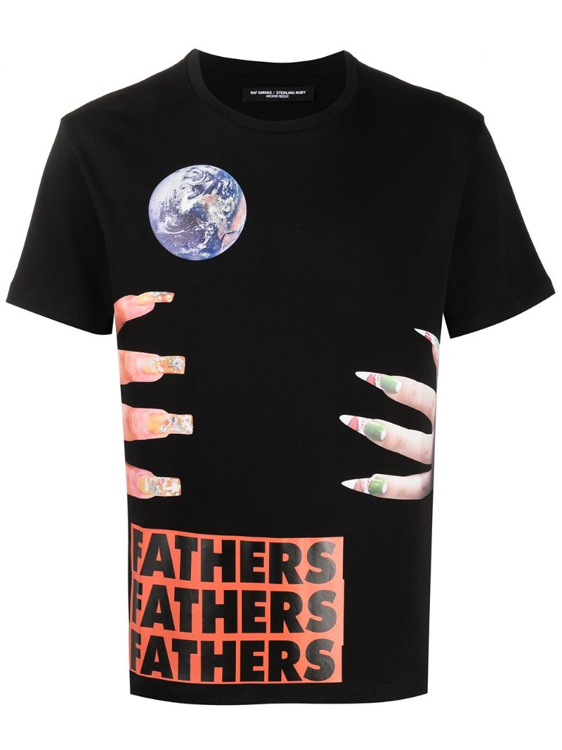 x Sterling Ruby Fathers T-shirt This is not a plain black tee. With an eye-catching print, this Raf Simons x Sterling Ruby Fathers T-shirt instantly adds an edgy feel to your outfit. Can you handle it? Imported Composition Cotton 100% SIZE & FIT Model measurements Height 6 ft 1 in(1.85 m) Bust/Chest 34.6 in(88 cm) Hips 36.2 in(92 cm) Waist 27.2 in(69 cm) Measurement Shoulder 17.3 in(44 cm)