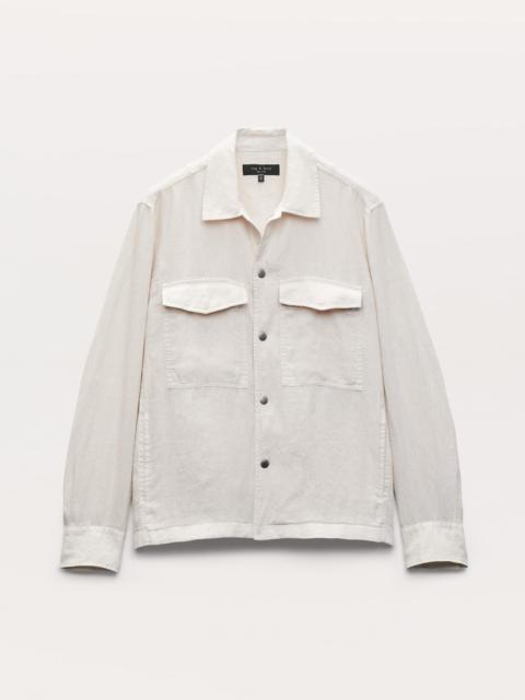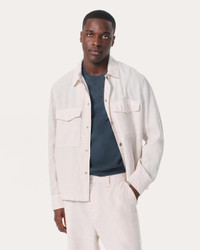 The perfect hybrid layer, updated for the season entirely in lightweight, breathable linen for days when the temperature dips. Military-inspired details and snapped flap pockets add utility while nodding to classic workwear. Pair it with the matching Baggy Linen Trousers for an easygoing set well-suited to summer. Size & Fit • Classic fit • Fits true to size • Size Medium: back length 27.25" | chest 48" | sleeve length 35.5" • Model is 6'3" wearing size medium Features & Details • 100% linen • Exposed snap closure • Exposed snaps at center front and cuffs with a cuff adjuster snap and hidden snaps at each pocket flap • Front chest patch pockets • Machine wash cold & tumble dry low • Imported Product ID: MBW25P2005LIML