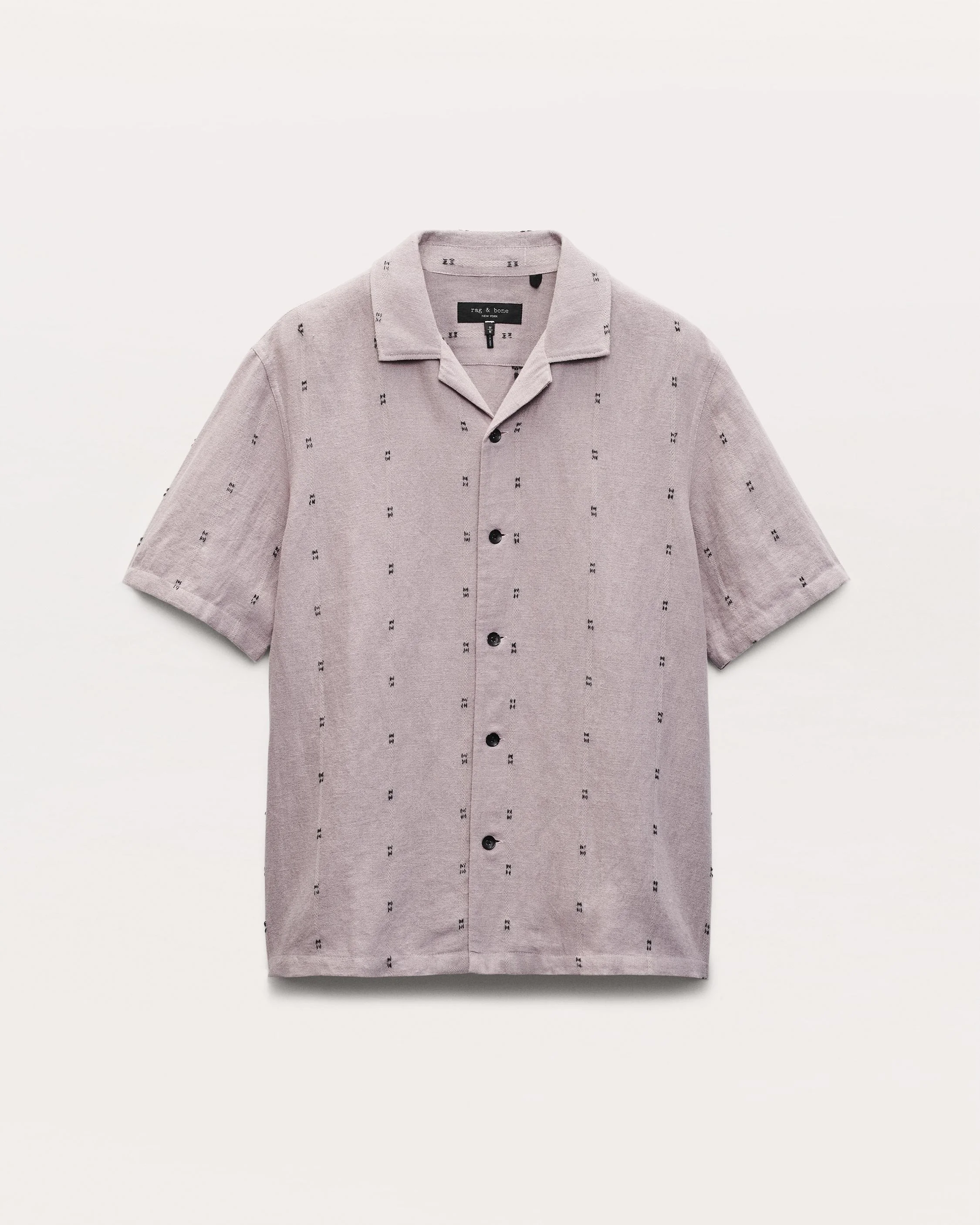 Cut for a classic fit, Avery is our easygoing take on the camp shirt. This short-sleeve version is updated for summer in a lightweight, breathable blend of cotton and linen. It's embroidered with an allover broken stripe pattern that adds texture and dimension. Throw it on over shorts or swim trunks to go from the beach to the bar, or wear with jeans or chinos for a night out. Size & Fit • Classic fit • Fits true to size • Size Medium: Back length 26.75", chest 45.75", sleeve length 19.5" • Model is 6'1" wearing size medium Features & Details • 50% cotton, 50% linen • Machine wash cold inside out on delicate & tumble dry low • Do not dry clean • Distressed buttons at center front • Button closure • Imported Product ID: MBW25PA021LIML