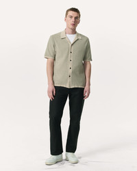 Updated for the season in terry yarn with a plush toweling texture, this knit camp shirt effortlessly transitions between any warm-weather activity, whether formal or casual. A distinctive zig-zag stitch and solid contrast trims complete its elevated look. Size & Fit Classic fit Size Medium: Back length 25 5/8", chest 44 3/4", sweep 43 1/2", sleeve length 19 1/4" Model is 6'1" wearing size medium Features & Details 49% Cotton, 27% Viscose, 24% Nylon Machine wash cold inside out with like colors, gentle cycle, do not bleach, lay flat to dry, cool iron on the reverse side if needed Suede rag & bone logo tab at sleeve cuff Metal buttons at front closure Imported Product ID: MBS25S036YF36